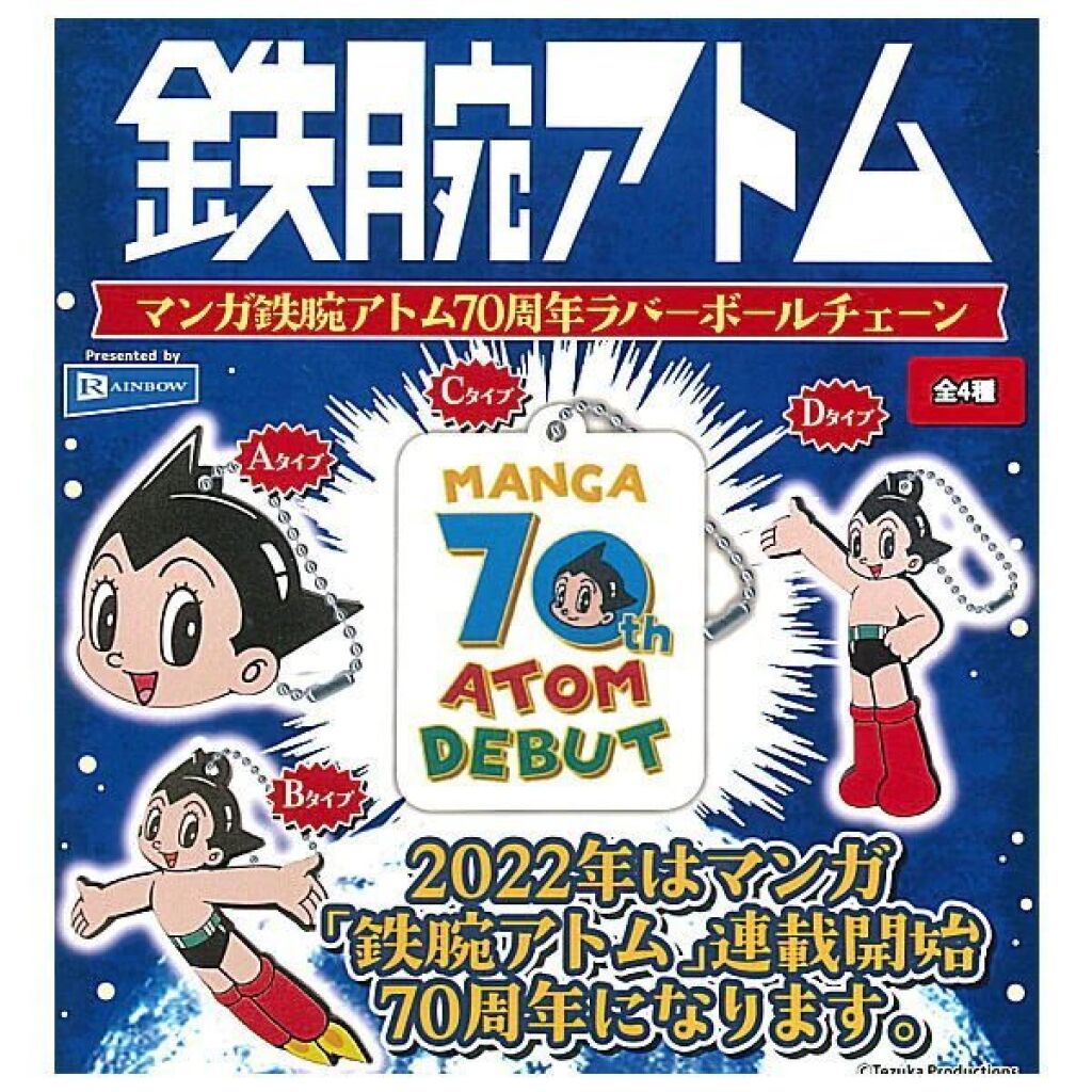 Vanwege het 70 jarig bestaan is deze gashapon serie van Astro Boy sleutelhangers uitgebracht. Versie C is een embleem van Astro Boy. De hanger is ongeveer 4 cm groot. Er zijn verschillende varianten verkrijgbaar. Gemaakt van een rubber materiaal. Import uit Japan met officiële license. Verzendmethode binnen Nederland is brievenbuspost.