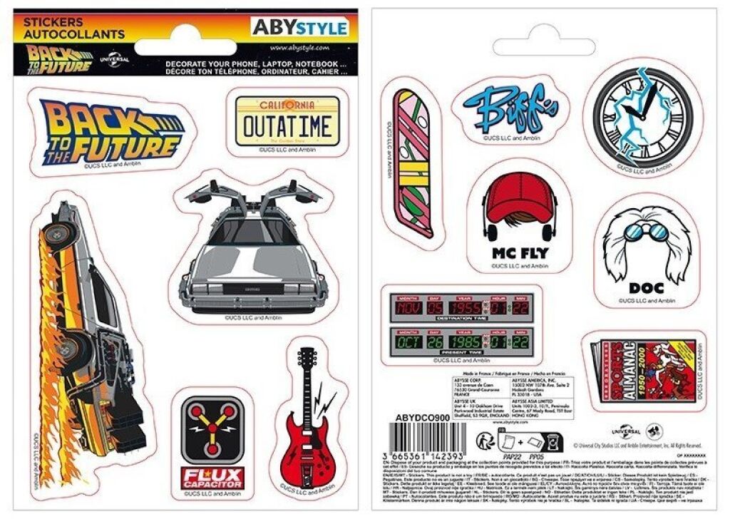 Back to the Future stickers met het thema Time travel. Er zitten 13 verschillende stickers in dit setje. Gemaakt door Abystyle. Nieuw in verpakking. Verzendmethode binnen Nederland is brievenbuspost.