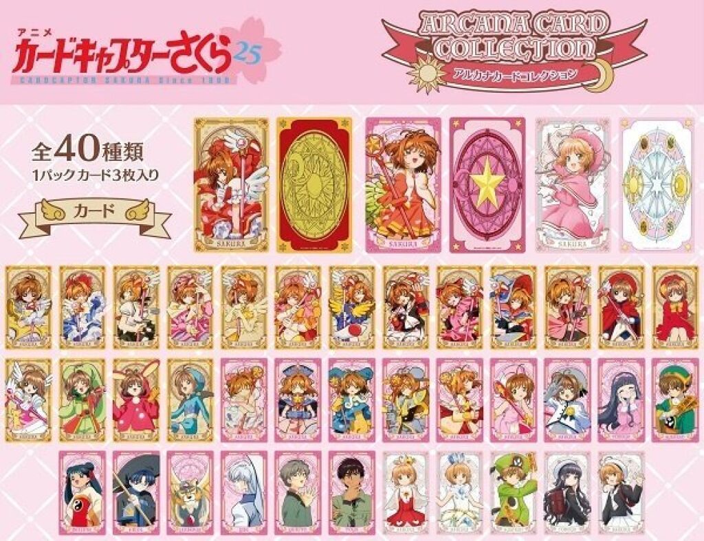 Introducing collectible arcana cards in celebration of the 25th anniversary of the Cardcaptor Sakura anime! The cards feature designs themed after the Clow Cards, Sakura Cards, and Clear Cards with artwork of Sakura and friends in outfits from throughout the years. 3 cards per pack