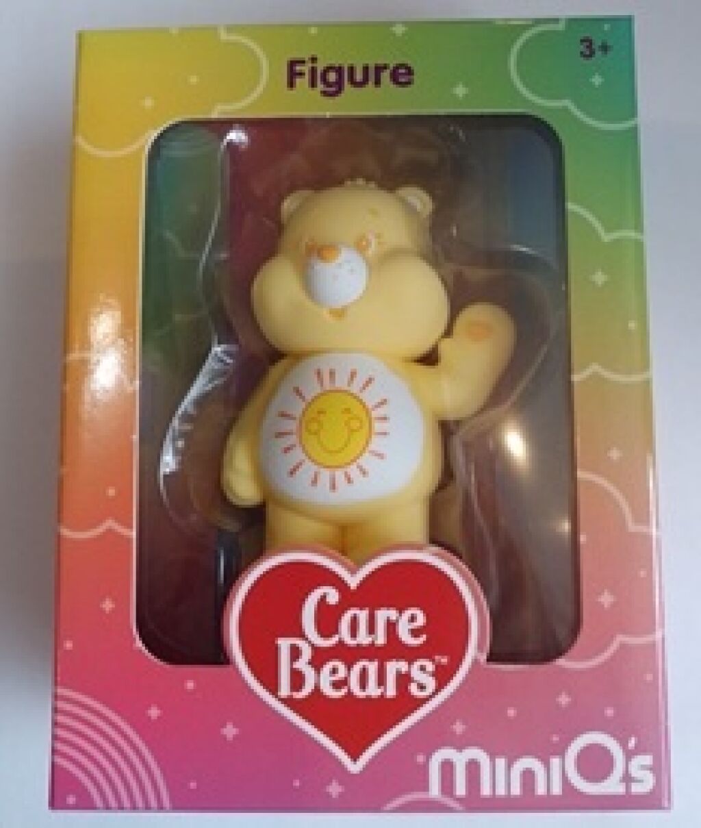 Care Bears miniQ's figuurtje. Deze gele variant met de zon op zijn buik is ongeveer 7 cm groot. Het figuurtje zit in een displaydoosje. Er zijn verschillende varianten verkrijgbaar. Nieuw in verpakking gemaakt door Khadou. Verzendmethode binnen Nederland is pakketpost.