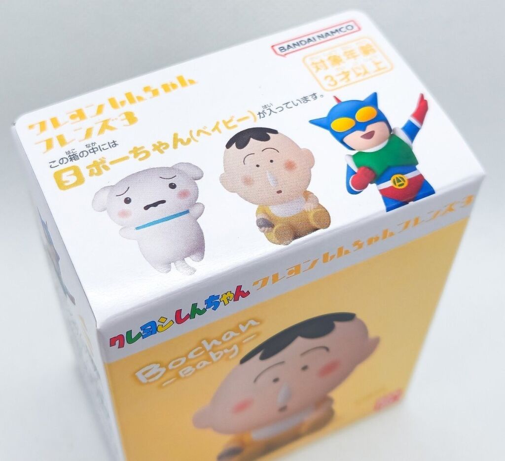 Crayon Shin Chan Friends serie 3 mini figuur, in doosje 5 zit Bochan Baby. Dit mini figuurtje is gemaakt door Bandai. Het figuurtje is ongeveer 4 a 7 cm groot. Er zijn meerdere versies verkrijgbaar uit deze serie. Nieuw in verpakking. Verzendmethode binnen Nederland is pakketpost.