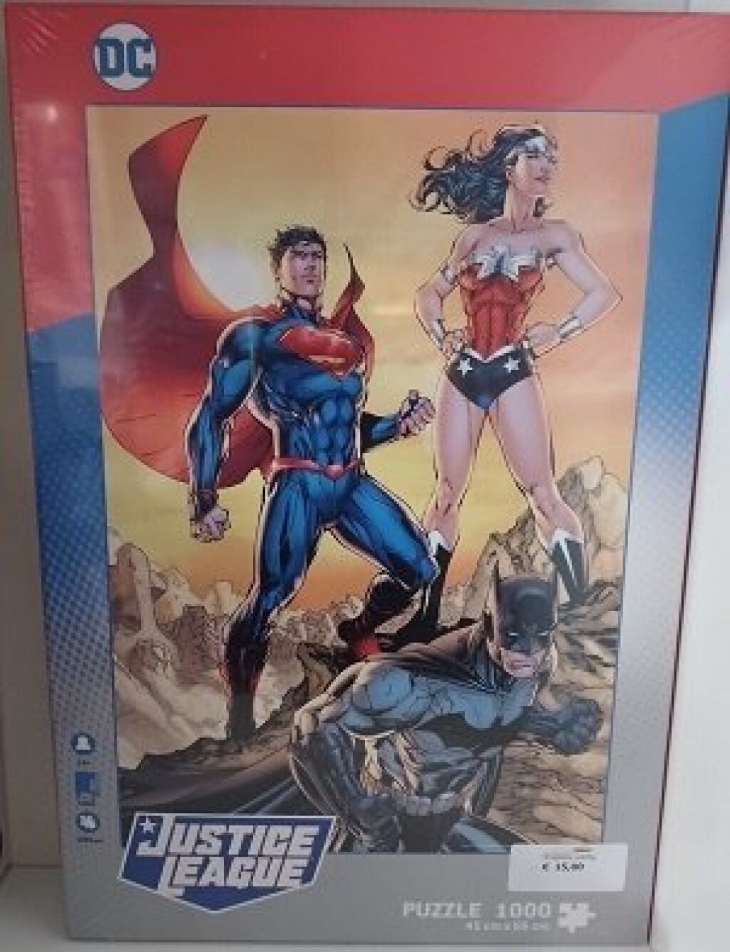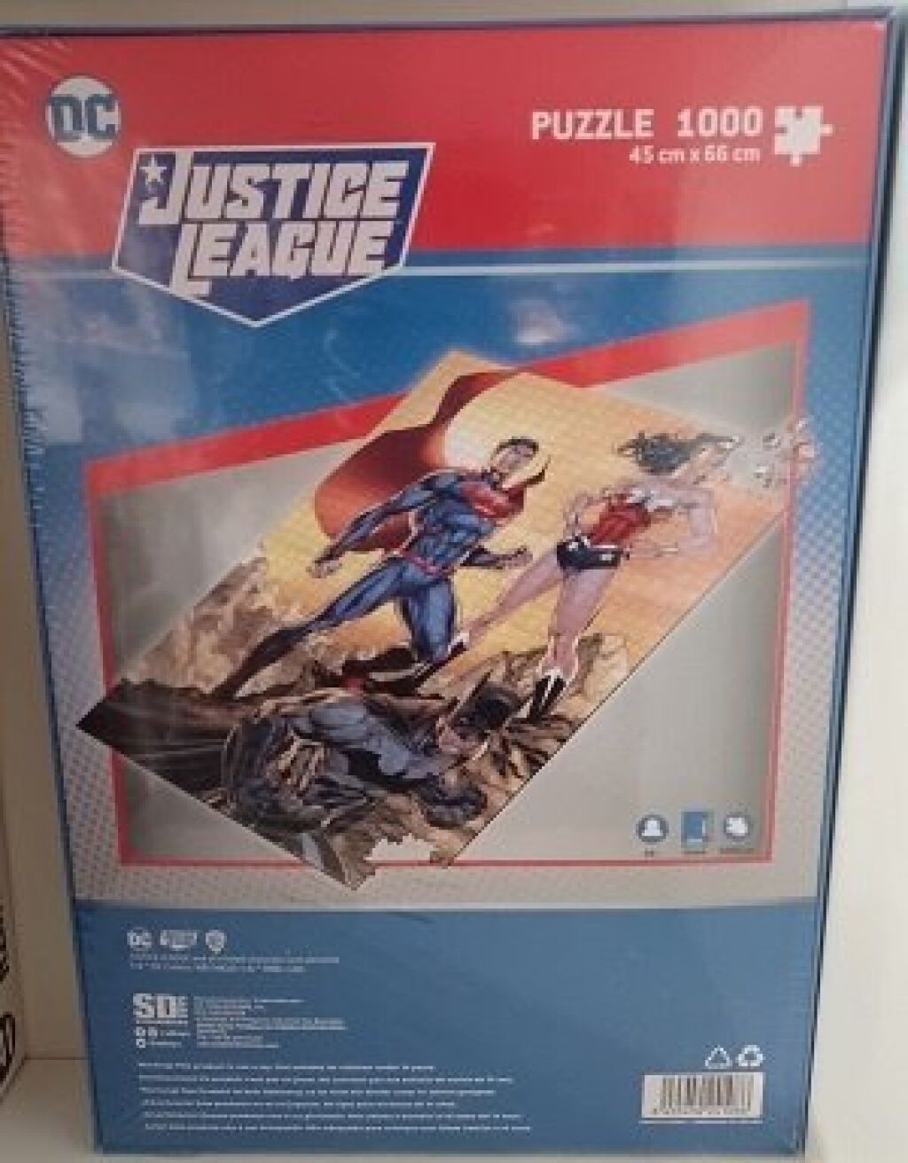 DC Justice League puzzel met een afbeelding van Superman en Wonder Woman. Deze puzzel heeft 1.000 stukjes. Wanneer de puzzel gemaakt is, is de afmeting 45 x 66 cm. Gemaakt door SD Toys. Nieuw in verpakking. Verzendmethode binnen Nederland is pakketpost.