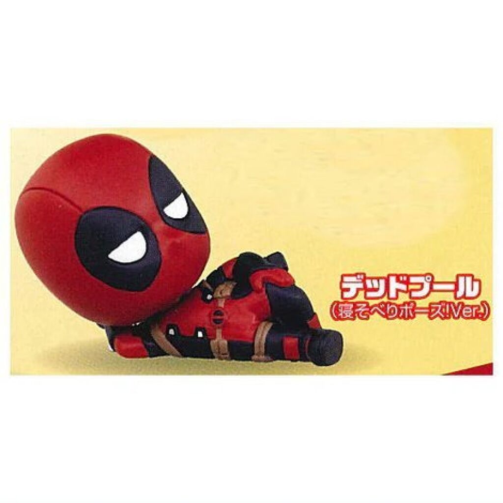 Deadpool Marvel mini figuur Deadpool Lying down. Het figuurtje is ongeveer van ongeveer 5 cm groot. Uit deze gashapon reeks zijn nog meerdere versies verkrijgbaar. Gemaakt door Takara Tomy ARTS. Met officiële license. Verzendmethode binnen Nederland is pakketpost.