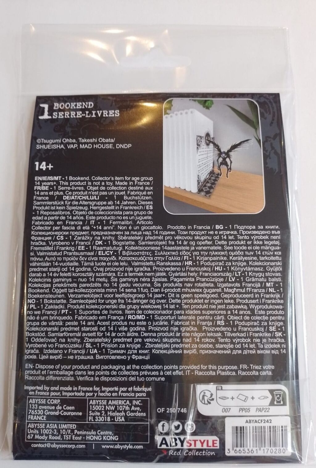 Death Note acryl bookend / boekensteun. Deze boekensteun heeft een mooie print van Ryuk. Het is ongeveer 15 cm hoog en 11 cm breed. Gemaakt door Abystyle. Nieuw in verpakking. Verzendmethode binnen Nederland is pakketpost.