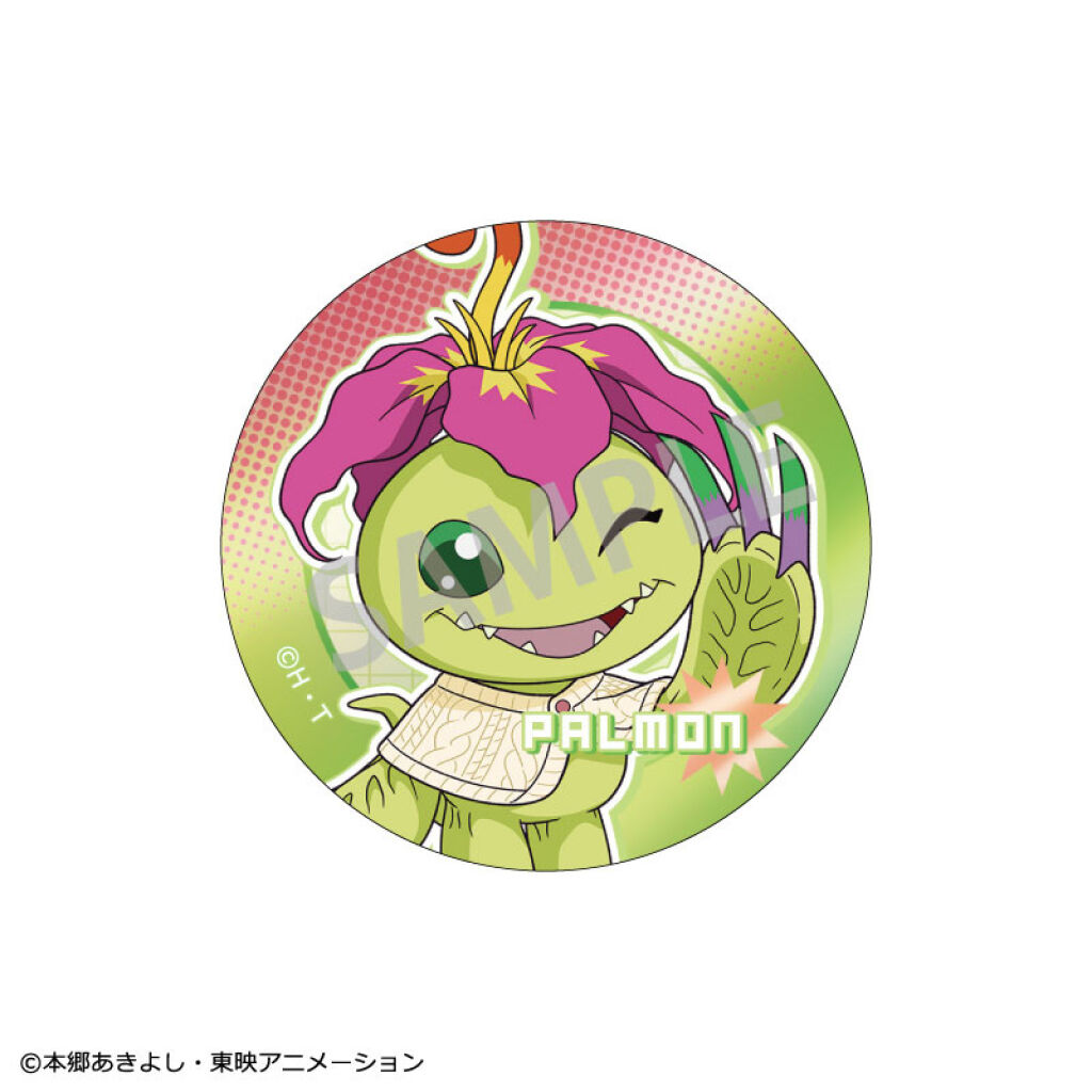 Digimon Adventure metallic badge / button met een afbeelding van Palmon. De badge heeft een doorsnede van ongeveer 5,5 cm groot. Gemaakt door Kamio in Japan. Met officiële licentie. Verzendmethode binnen Nederland is brievenbuspost.