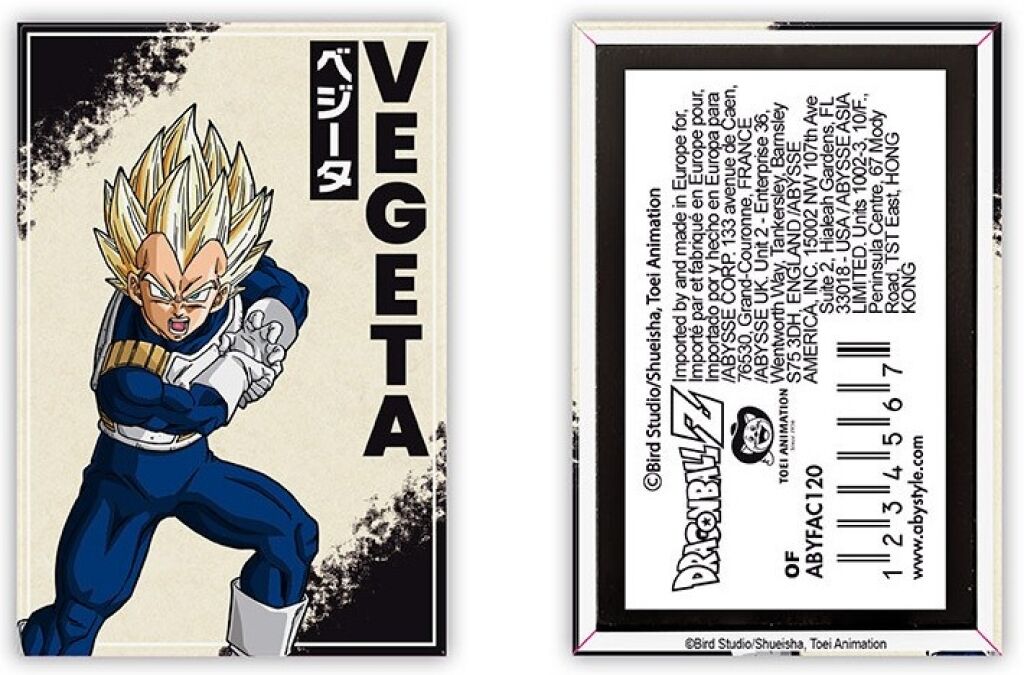 Dragon Ball Z magneet met een afbeelding van Vegeta. De magneet is 5 x 8 cm. Gemaakt door Abystyle. Met officiële licentie. Verzendmethode binnen Nederland is brievenbuspost.
