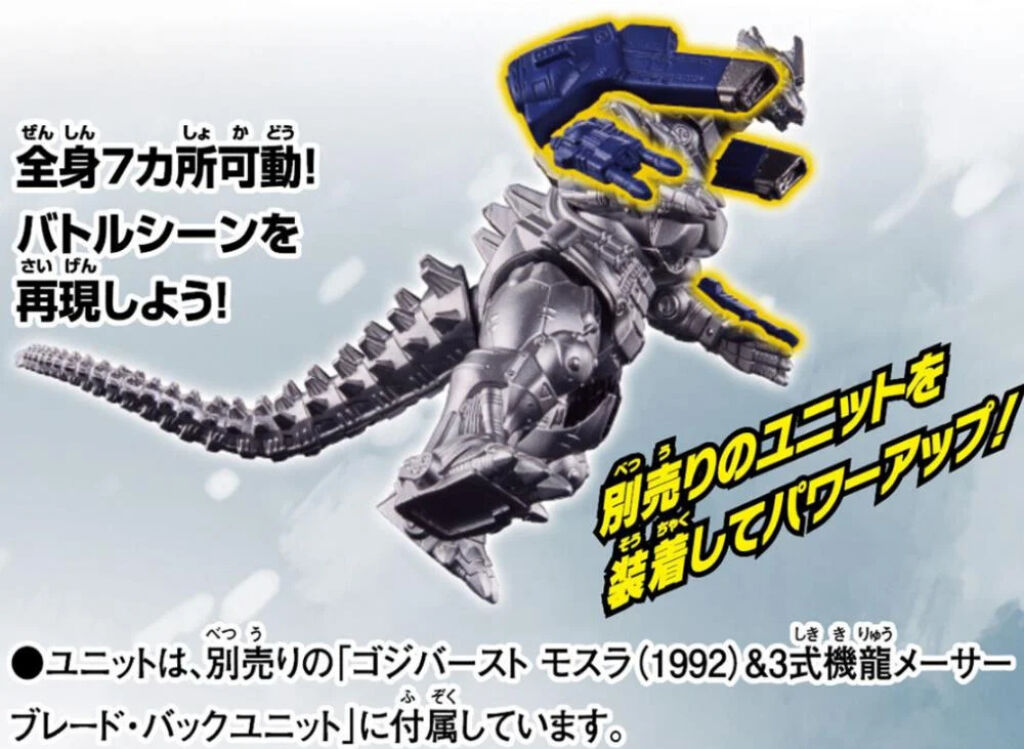 Equipped with distinctive gimmicks and movement, the Kiryu 3 (Mechagodzilla) has seven points of articulation throughout its body! By attaching the maser blade and back unit from the same series (sold separately), it is possible to recreate a heavily armed version.