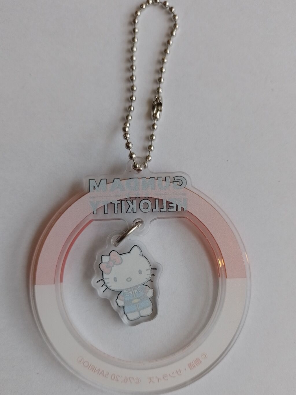 Gundam x Hello Kitty keychain acryl. Deze ronde hanger heeft in het midden een hangertje van Hello Kitty in Gundam uitvoering. De hanger is ongeveer 6 cm groot. Gemaakt door Arma Bianca, import uit Japan. Verzendmethode is brievenbuspost binnen Nederland.