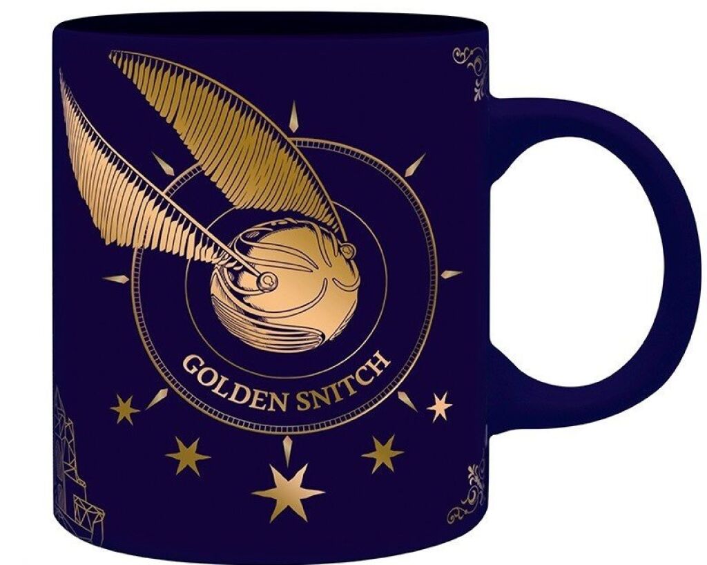Harry Potter beker /mok in het donkerblauw met een gouden print van de Golden Snitch. Deze beker is niet geschikt voor de vaatwasser of magnetron. De mok heeft een inhoud van 460 ml. Gemaakt door Abystyle. Nieuw in verpakking. Verzendmethode binnen Nederland is pakketpost.