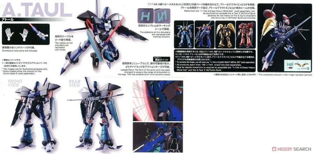 Heavy Metal A-Taul 1/144 schaal high grade bouwpakket. Deze model kit is gemaakt door Bandai. Lijmen is niet nodig. Je klikt ze in elkaar. Nieuw in verpakking. Verzendmethode binnen Nederland is pakketpost.