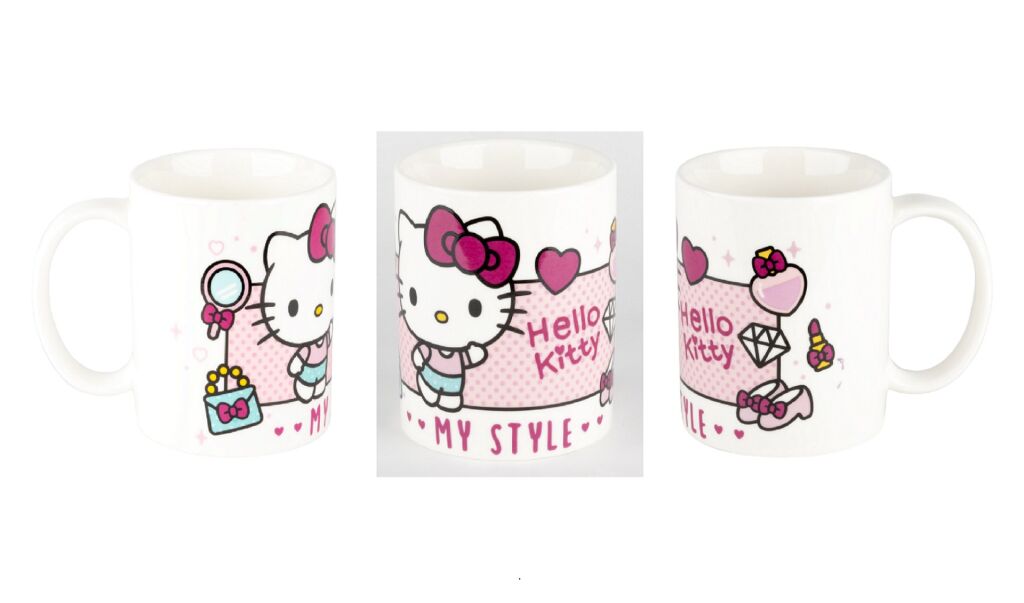Hello Kitty beker / mok met een afbeelding van Hello Kitty My Style. Gemaakt van keramiek met een inhoud van 320 ml. Met officiele license van Sanrio. De mok is vaatwassser- en magnetronbestendig, maar om de kwaliteit van de print op de mok te waarborgen, adviseren we de beker met de hand te wassen. Gemaakt door Konix. Verzendmethode binnen Nederland is pakketpost.