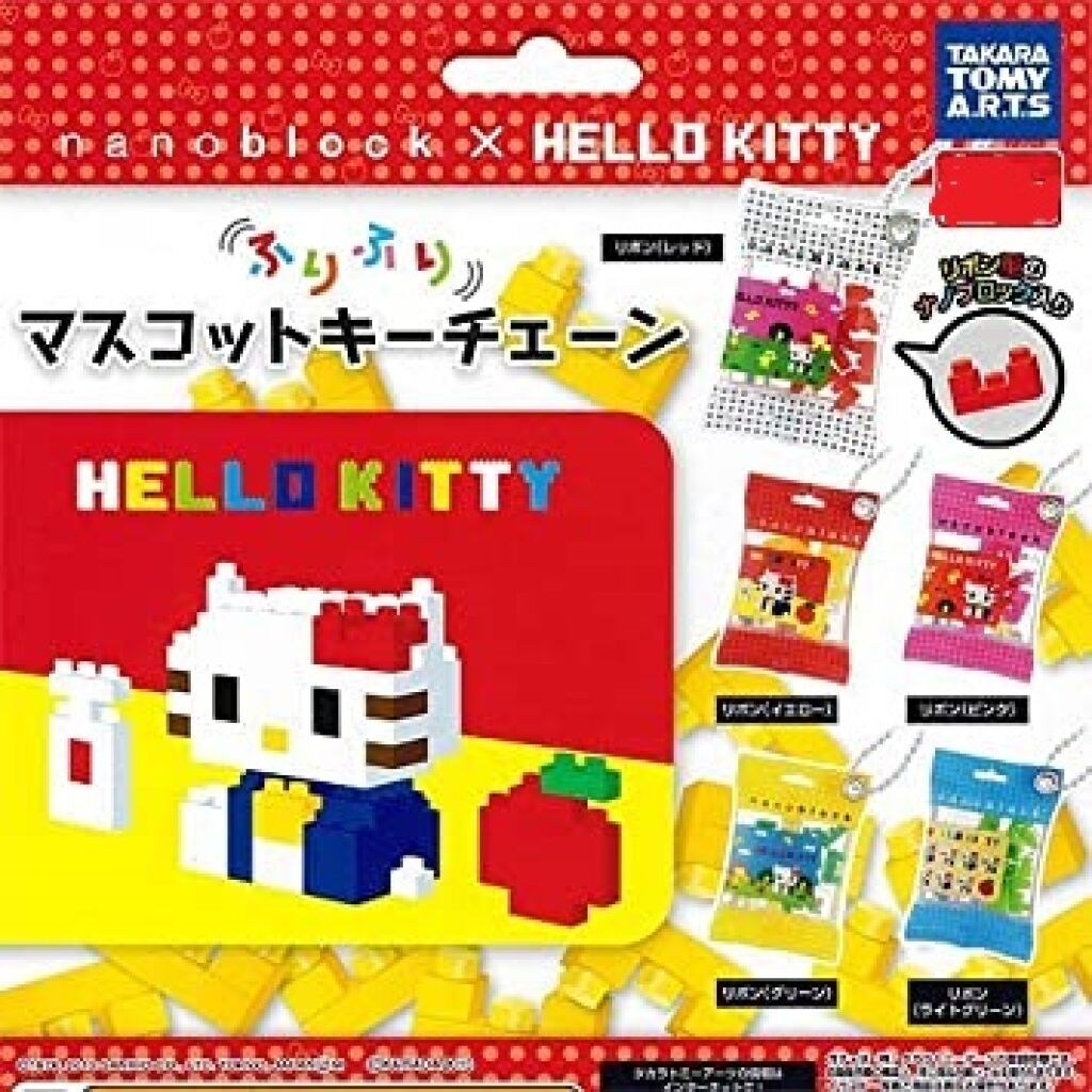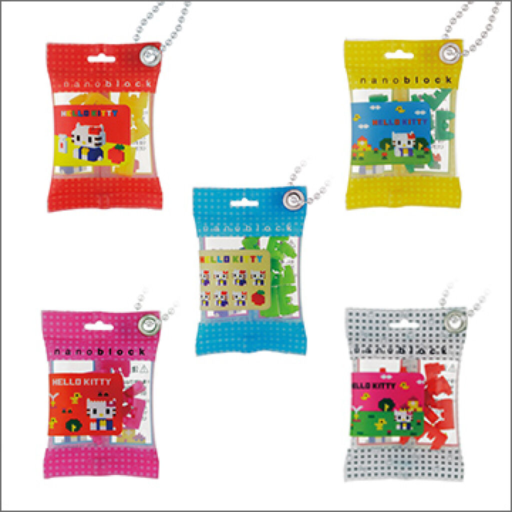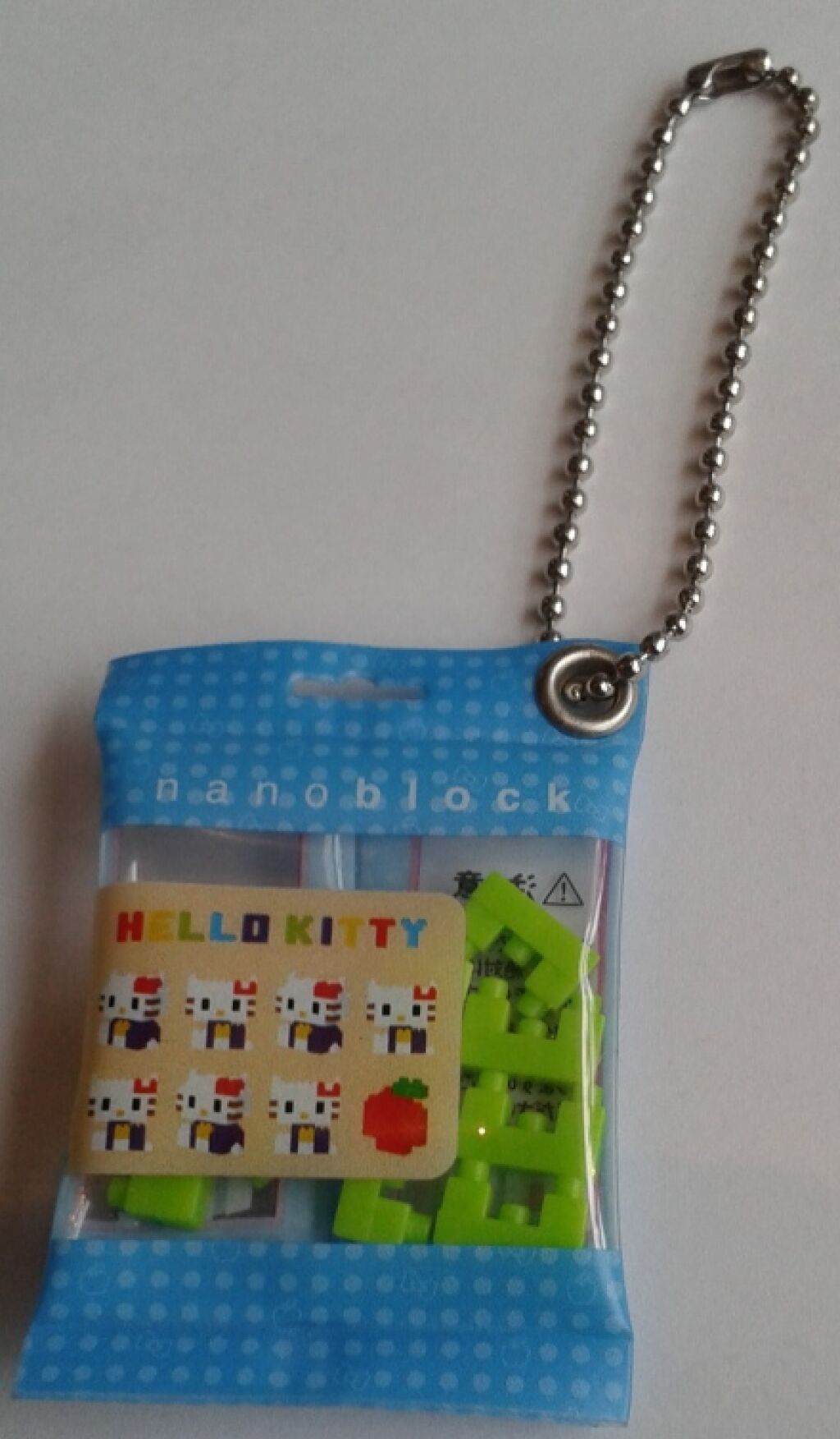 Hello Kitty keychain; aan de hanger zit een mini zakje Nanoblocks met een afbeelding van Hello Kitty. De hanger is ongeveer 5 cm groot. Er zijn meerdere versies uit deze serie verkrijgbaar. Gemaakt door Takara Tomy arts, import uit Japan. Verzendmethode is brievenbuspost.