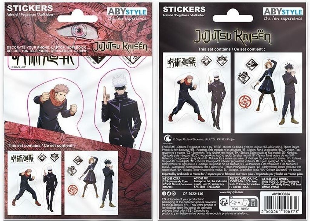 Jujutsu Kaisen mini stickers met diverse afbeeldingen. In deze set zijn in ieder geval Yuji, Megumi en Nobara aanwezig. De stickers zijn in diverse afmetingen. Er zitten 10 verschillende stickers in dit setje. Gemaakt door Abystyle. Nieuw in verpakking. Verzendmethode binnen Nederland is brievenbuspost.