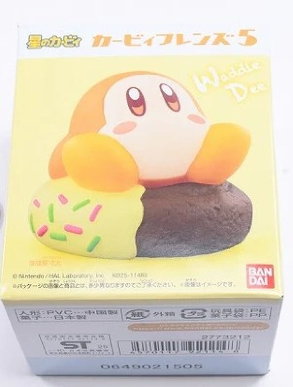 Kirby Friends part 5 soft vinyl mini figuur Waddle Dee donut. Dit mini figuurtje is gemaakt door Bandai. Het figuurtje is ongeveer 4 a 7 cm groot. Er zijn meerdere versies verkrijgbaar uit deze serie. Nieuw in verpakking. Verzendmethode binnen Nederland is pakketpost.