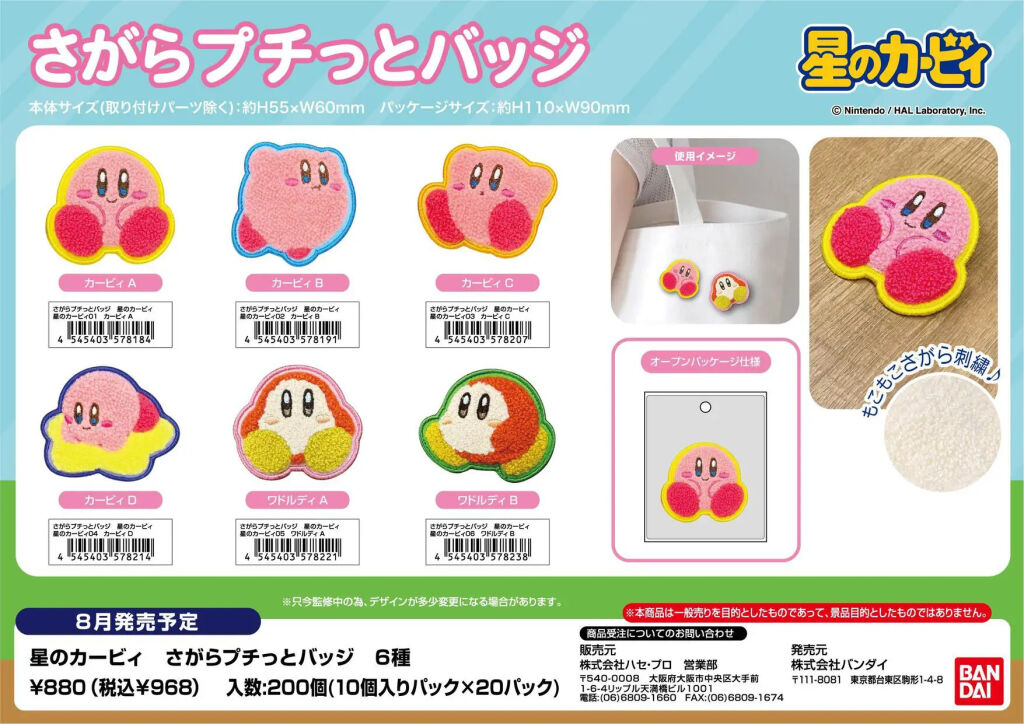 Kirby of the Stars sagara petit badge van Kirby versie A. Deze badge heeft een stoffen (embroidery) bovenkant. De badge is ongeveer 5 a 6 cm groot. Gemaakt door Bandai Namco, import uit Japan. Er zijn meerdere versies van deze serie verkrijgbaar. Verzendmethode is brievenbuspost.