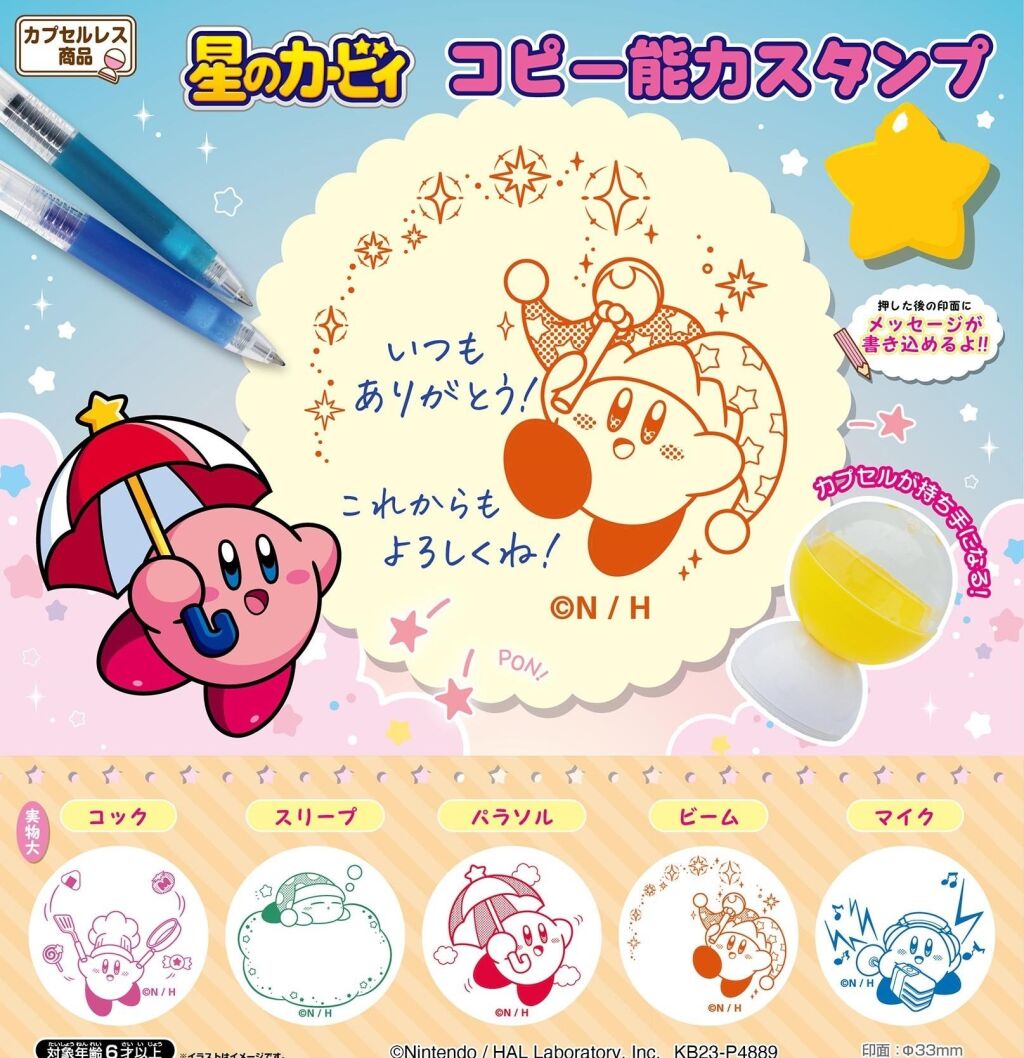 Kirby of the Stars stempel met afbeelding Beam Kirby. Deze gashapon serie komt uit Japan. Met officiele license. Er zijn meerdere versies uit deze serie verkrijgbaar. De stempel is ongeveer 3 cm groot in doorsnede. Dit item komt zonder verpakking. Verzendmethode binnen Nederland is pakketpost.
