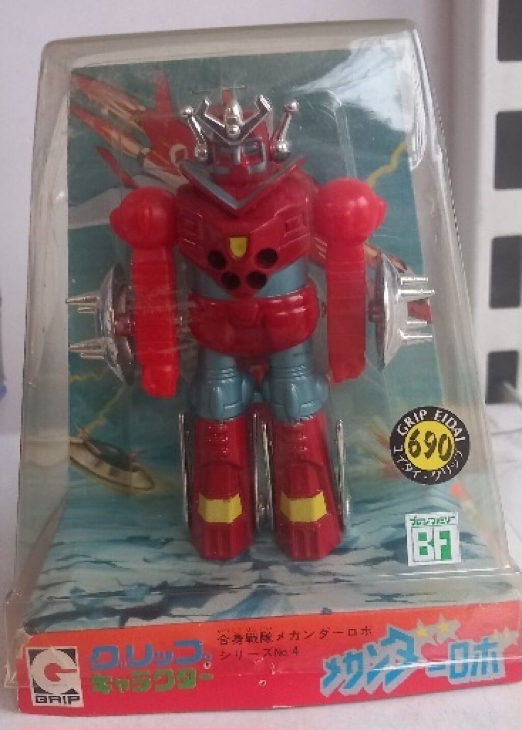 Mechander Robo vintage diecast Robot van ongeveer 9 cm. Deze 1970s Robot is gemaakt door Eidai Grip in Japan. De Raketjes ontbreken. Komt zoals te zien is op de foto met de originele verpakking. Verzendmethode binnen Nederland is pakketpost.