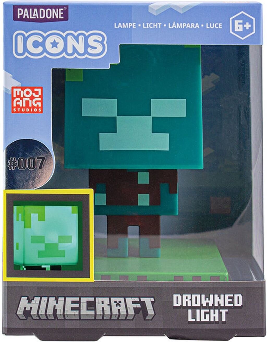 Minecraft lampje Drowned. Gemaakt door Paladone. Werkt op 2x AAA batterijen. (Deze zitten er nog niet bij.) Nieuw in verpakking. Met officiële license. Verzendmethode binnen Nederland is pakketpost.