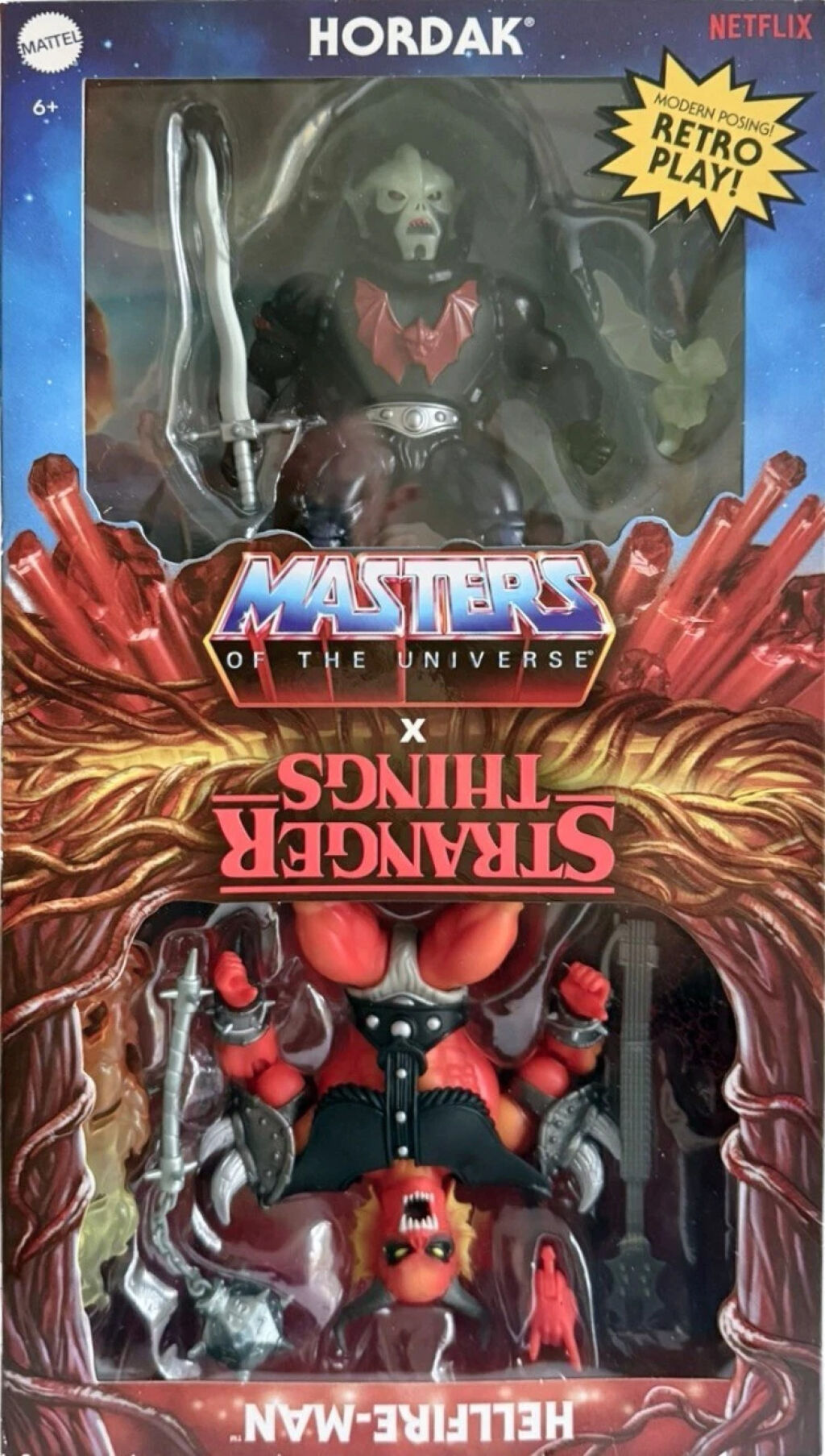 MOTU X Stranger Things Origins actiefiguren Hordak & Hellfire-Man. Deze action figures zijn ongeveer 14 cm. Gemaakt door Mattel. Nieuw in verpakking. Verzendmethode binnen Nederland is pakketpost.
