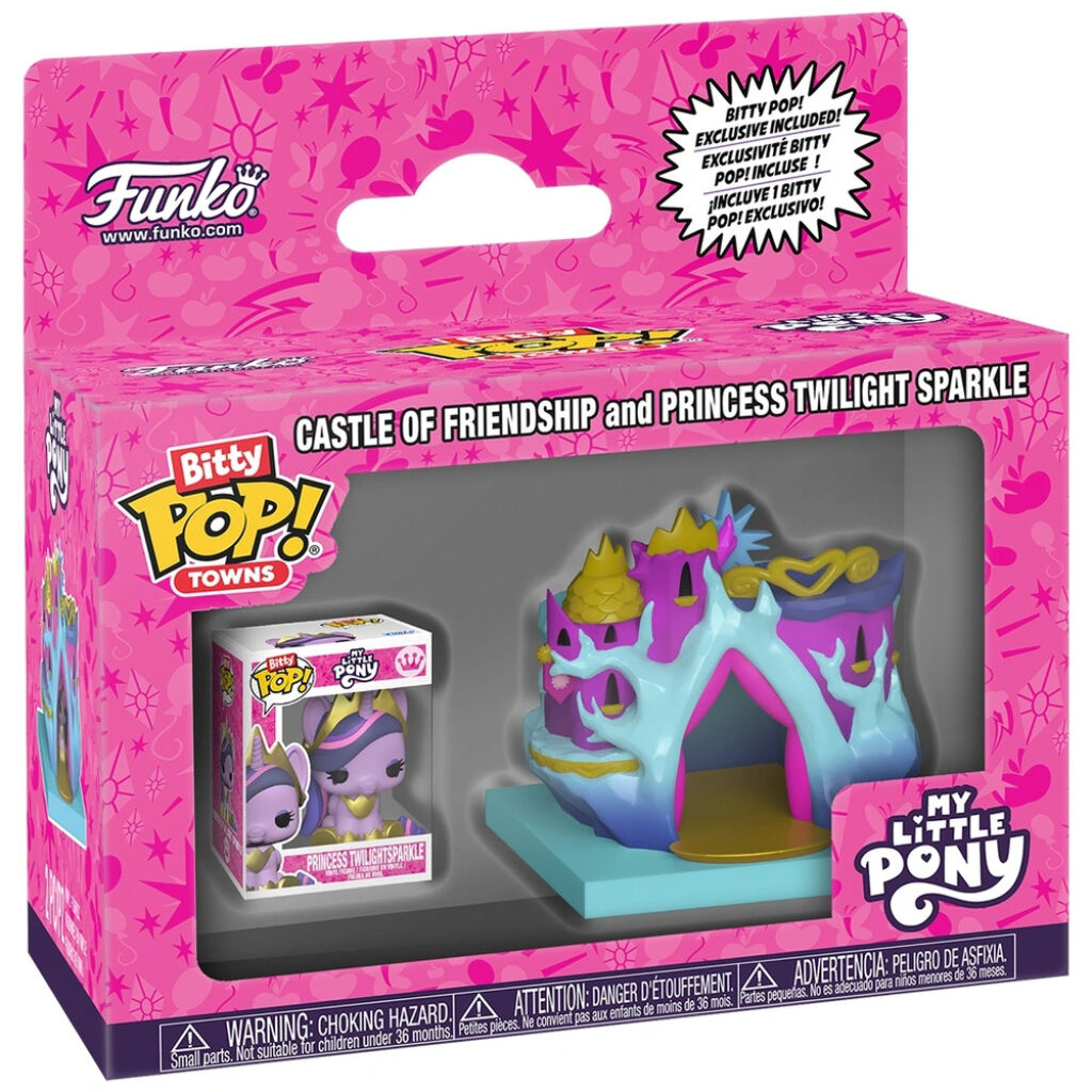 My Little Pony Bitty Pop! Towns. In deze verpakking zit Princess Twilight Sparkle en Castle of Friendship. Het Funko figuurtje is ongeveer 2,5 cm groot. Gemaakt door Funko. Nieuw in verpakking. Verzendmethode binnen Nederland is pakketpost.
