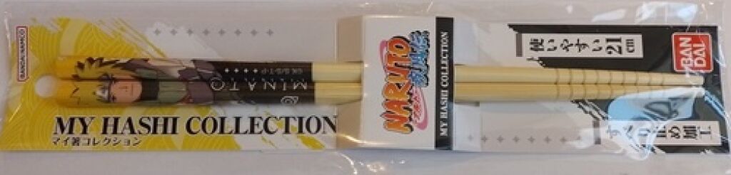 Naruto chopsticks My Hashi collection. De chopsticks hebben een afbeelding van Minato. Twee chopsticks van ongeveer 21 cm lang. Nieuw in verpakking. Gemaakt door Bandai Namco; import uit Japan. Er zijn verschillende chopsticks in deze reeks gemaakt. Verzendmethode binnen Nederland is pakketpost.