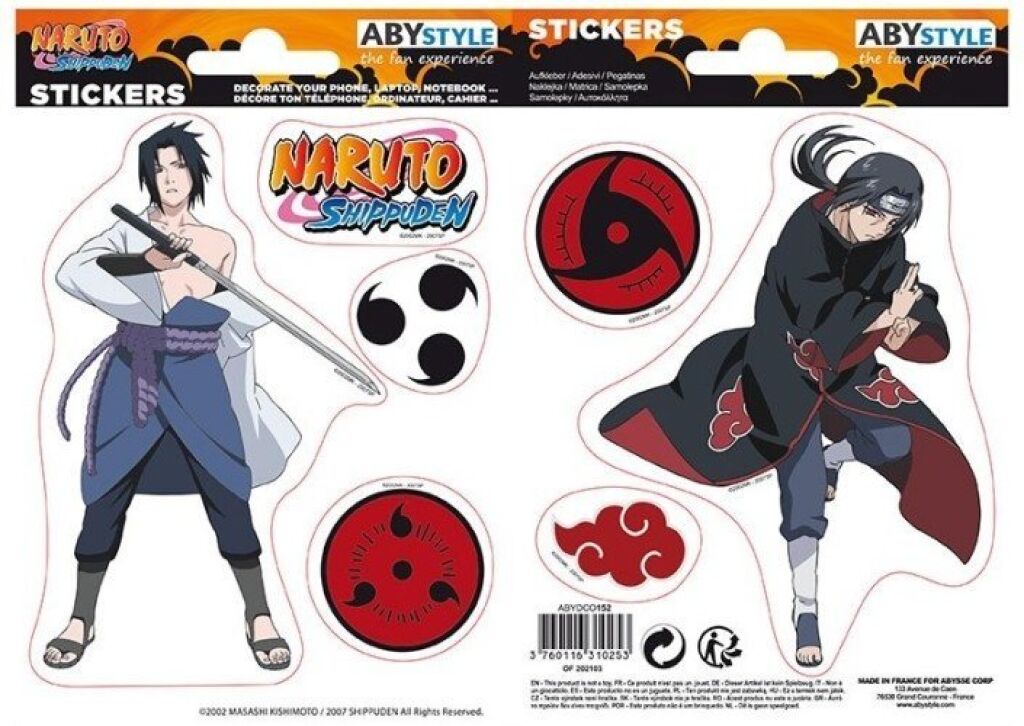 Naruto stickers van Sasuke & Itachi. De stickers zijn in diverse afmetingen. Er zitten 7 verschillende stickers in dit setje. Gemaakt door Abystyle. Nieuw in verpakking. Verzendmethode binnen Nederland is brievenbuspost.