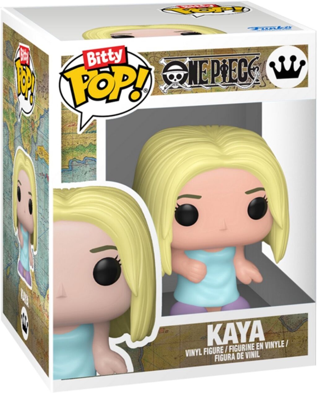One Piece Bitty Pop! vinyl figuren 4-pack met de karakters Usopp, Kaya, Kuro en Dracule Mihawk. De figuurtjes zijn 2,5 cm groot. Gemaakt door Funko. Nieuw in verpakking. Verzendmethode binnen Nederland is pakketpost.