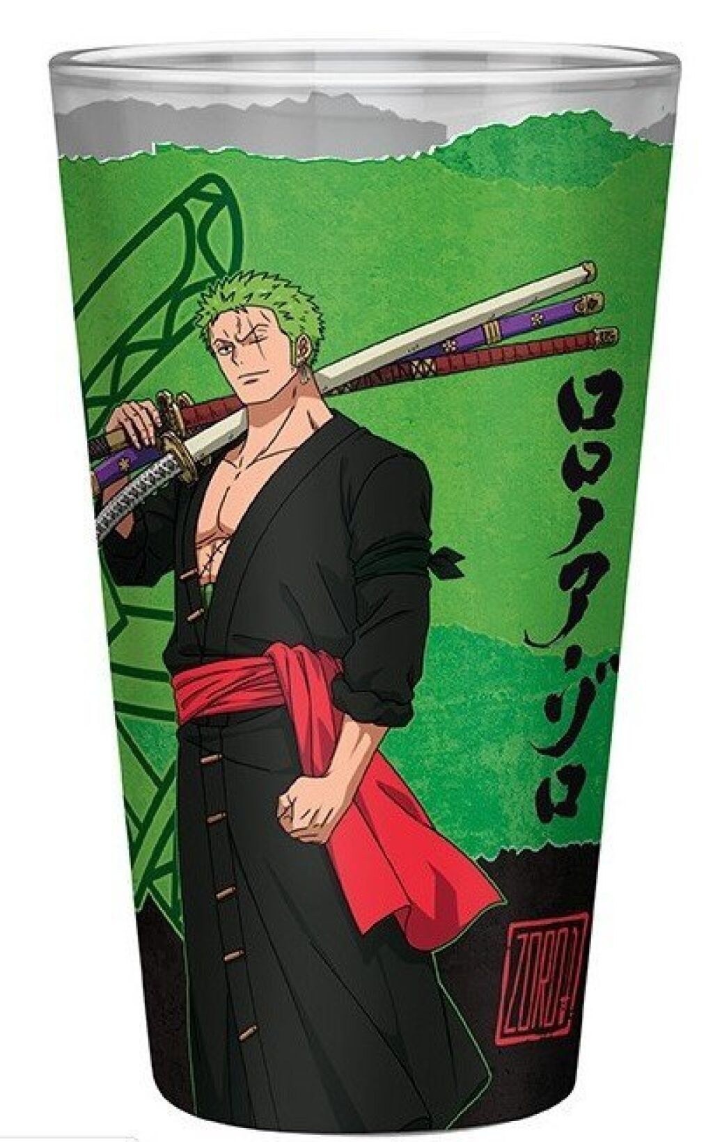 One Piece groot drinkglas met een inhoud van 400 ml. Het glas heeft een print van Zoro. Niet geschikt voor de vaatwasser of magnetron. Nieuw in verpakking. Gemaakt door Abystyle. Verzendmethode binnen Nederland is pakketpost.