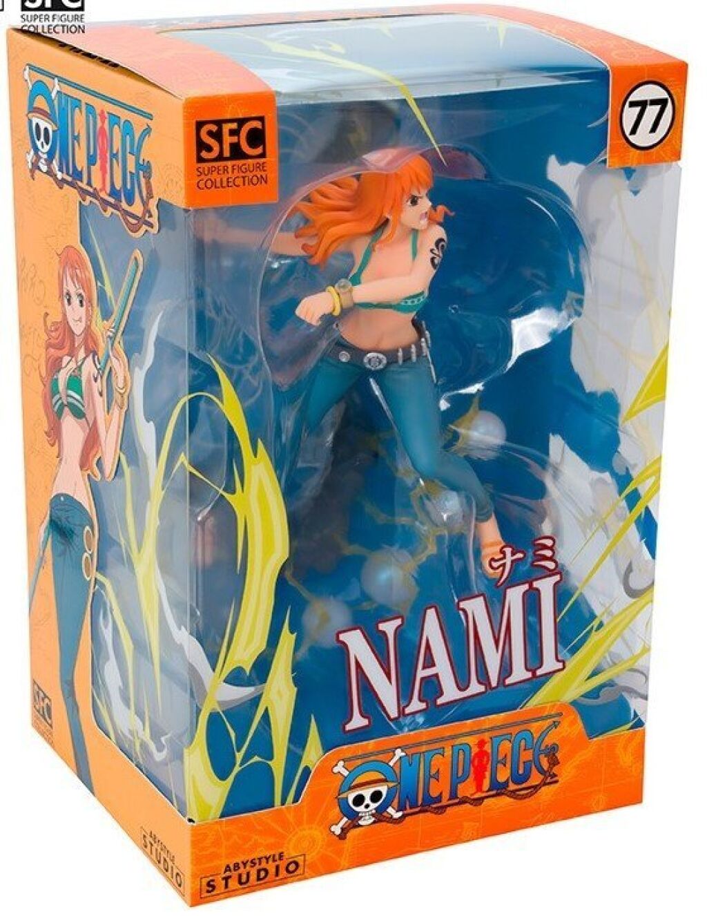 One Piece SFC pvc figuur Nami. Dit mooie gedetailleerde figuur is ongeveer 16 cm groot. Gemaakt door ABYstyle. Nieuw in verpakking. Verzendmethode binnen Nederland is pakketpost.