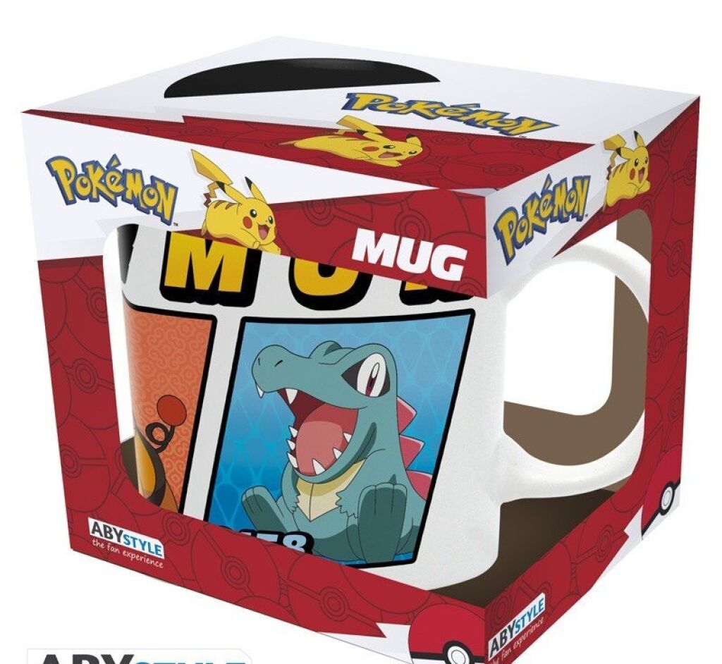 Pokemon beker / mok met een afbeelding van Starters legends met de karakters Chikorita, Totodile en Tepig. De beker heeft een inhoud van 300 ml. Gemaakt door Abystyle. Nieuw in verpakking. Verzendmethode binnen Nederland is pakketpost.