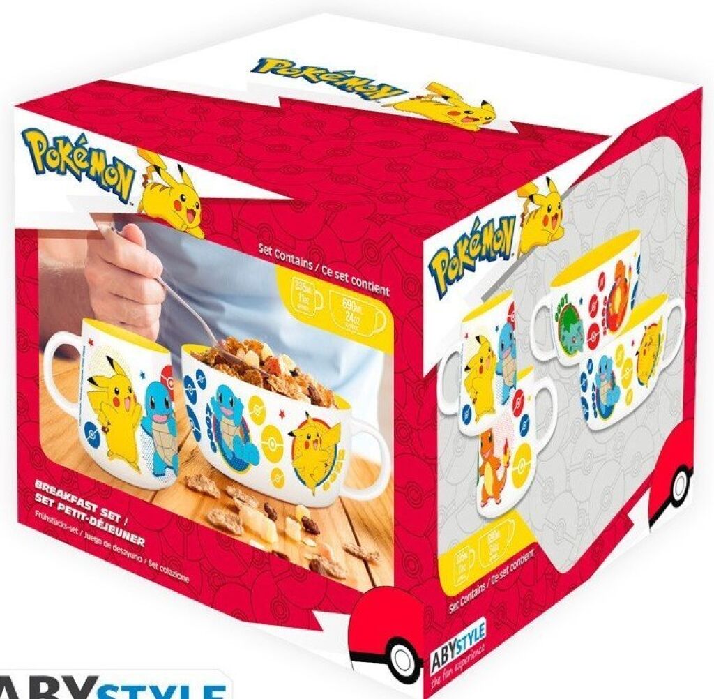 Pokemon breakfast set van een beker / mok en een schaal. De set heeft een print van Pikachu en de Kanto starters. De geschenkdoos bevat een mok van ca 0,4 l en een bowl met oor van ca 0,8l allebei met print. Het wordt geleverd in een unieke geschenkverpakking om te verzamelen. Mok en bowl mogen in de vaatwasser en magnetron. Nieuw in verpakking gemaakt door Abystyle. Verzendmethode binnen Nederland is pakketpost.