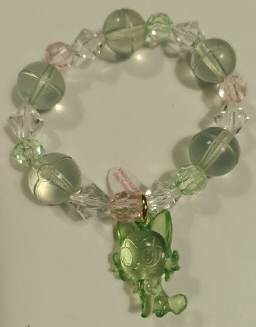 Pokemon Dreamy bracelet / armbandje met een bedel van Sprigatito. De armband in groene tint heeft kralen in de vorm van Pokemon ballen afgewisseld met andere kralen en een bedel van Sprigatito. Uit deze gashapon serie zijn nog meerdere versies verkrijgbaar. Gemaakt door Takara Tomy A.R.T.S. Import uit Japan. Verzendmethode binnen Nederland is brievenbuspost.