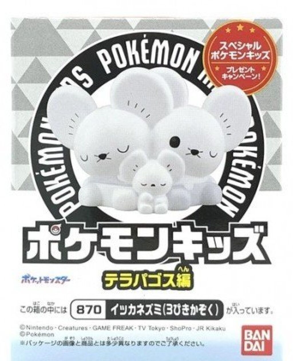 Pokemon Kids figuur Maushold family of three van ongeveer 4 cm groot. Dit figuurtje is hol van binnen. Geschikt als vingerpoppetje. Er zijn meerdere figuurtjes uit deze serie (Terapagos series 2025) verkrijgbaar. Gemaakt door Bandai. Nieuw in verpakking. Verzendmethode binnen Nederland is pakketpost.