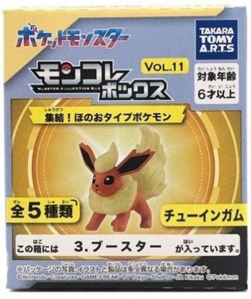Pokemon moncolle box figuren serie 11; Flareon. Het figuurtje zit in een klein doosje in plaats van op een blister verpakking. Het figuurtje is ongeveer 5 cm groot. Gemaakt door Takara Tomy; mooie kwaliteit en goede afwerking. Nieuw in verpakking, import vanuit Japan. Verzendmethode binnen Nederland is pakketpost.