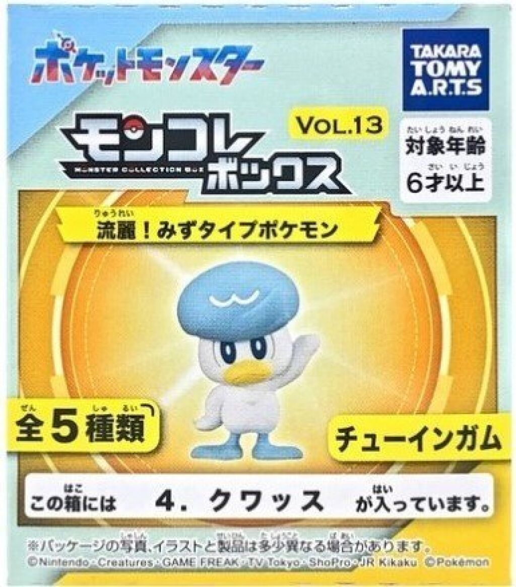 Pokemon moncolle box figuren serie 13; Quaxly. Het figuurtje zit in een klein doosje in plaats van op een blister verpakking. Het figuurtje is ongeveer 5 cm groot. Gemaakt door Takara Tomy; mooie kwaliteit en goede afwerking. Nieuw in verpakking, import vanuit Japan. Verzendmethode binnen Nederland is pakketpost.