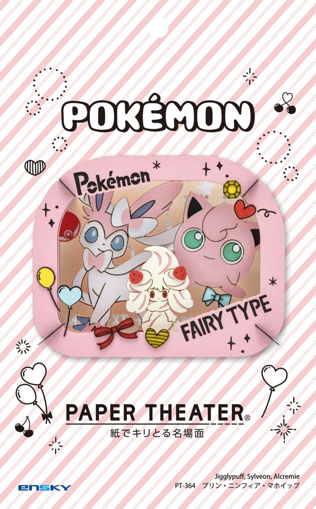 Pokemon Paper Theater set Fairy Type met Sylveon, Jigglypuff en Alcremie (PT-364). Dit pakketje bevat alle onderdelen om dit papieren theatertje in elkaar te zetten. Er zit een Engelse instructie bij. Met officiele license. Gemaakt door Ensky; import uit Japan. Nieuw in verpakking. Verzendmethode is brievenbuspost binnen Nederland.
