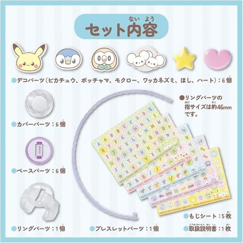 Set Contents: Deco parts Pikachu (1), Deco parts (1), Deco parts (1), Deco parts (1), Deco parts (1), Deco parts (1), Deco parts (1), Deco parts (1), Cover parts (6), Base parts (6), Bracelet parts (1), Ring parts (1), Mooji sheet (5), Instruction manual (1), Instruction manual in Japanese (1)