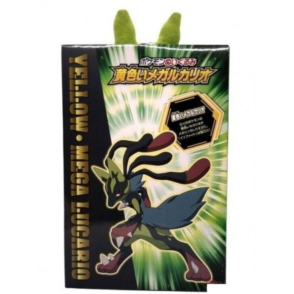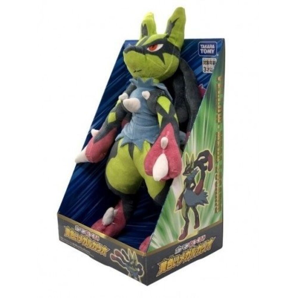 Pokemon pluche Shiny Mega Lucario. Deze Knuffel is ongeveer 34 cm groot. Hij wordt geleverd op een kartonnen display kaart die natuurlijk te verwijderen is. Gemaakt door Takara Tomy. Verzendmethode binnen Nederland is pakketpost.