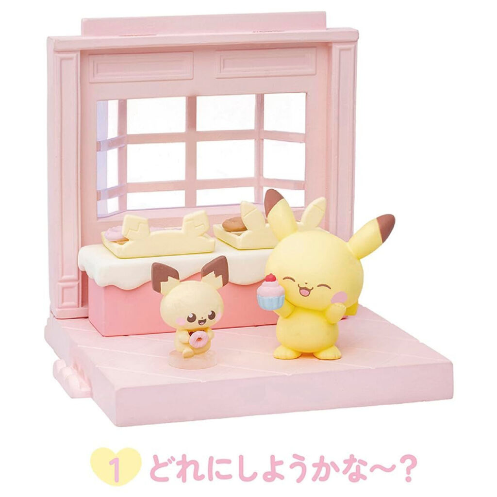 Pokemon PokePeace collection house Sweets shop. In doosje 1 zitten de het figuurtjes Pikachu en Pichu; Which one to Choose?. De figuurtjes zijn ongeveer 2 cm groot en het huisje is ongeveer 7 cm groot. De huisjes kan je aan elkaar koppelen. Van deze serie zijn er nog meerdere versies verkrijgbaar. Gemaakt door Takara Tomy. Import uit Japan. Nieuw in verpakking; de verpakking is voorzichtig geopend om te kijken welk figuurtje er in het doosje zit. Verzendmethode binnen Nederland is pakketpost.