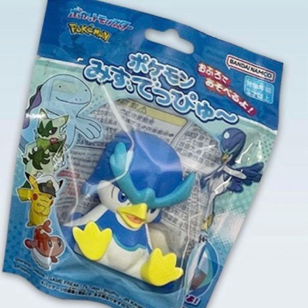 Pokemon figuur Quaxwell. Het figuurtje is van soft vinyl die je kan vullen met water en wanneer je het figuurtje inknijpt het water er weer uit spuit. Deze figuurtjes uit de water splash serie zijn ongeveer 6 cm groot. Gemaakt door Bandai Namco. Import uit Japan. Er zijn meerdere karakters uit deze serie verkrijgbaar. Nieuw in verpakking. Verzendmethode binnen Nederland is pakketpost.