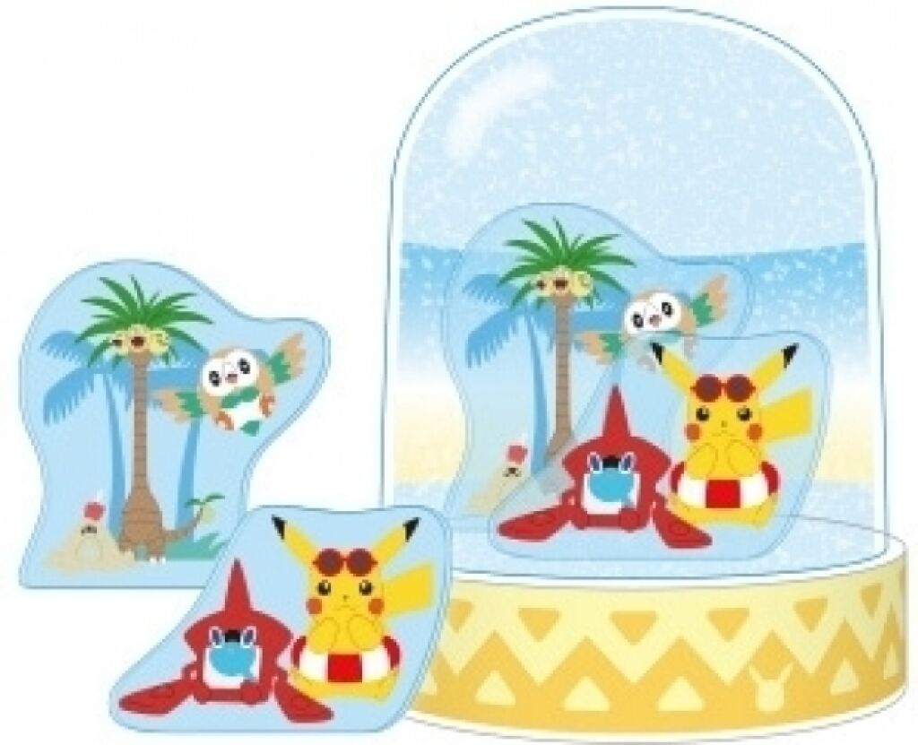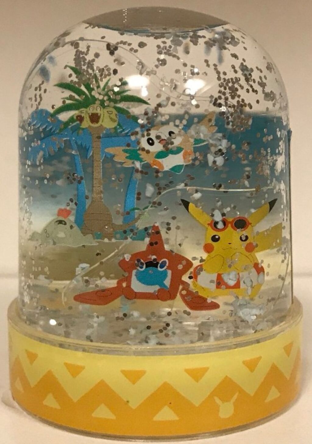 Pokemon water dome Pikachu, Rowlet en Pokevision. Deze gachapon serie bestaat uit een ovale plastic dome van ongeveer 5,5 cm hoog en 4,5 cm doorsnede, stopje, twee stickers en een zakje glitters. Je giet de glitters in de dome vult het met water stopje erop. Gemaakt door Takara Tomy arts, import uit Japan. Verzendmethode binnen Nederland is pakketpost.