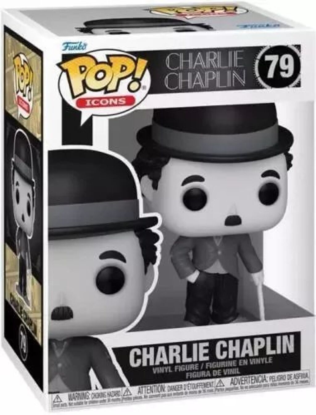 Pop! Icons 79 Charlie Chaplin van ongeveer 9 cm groot. Gemaakt door Funko. Nieuw in verpakking. Verzendmethode binnen Nederland is pakketpost.