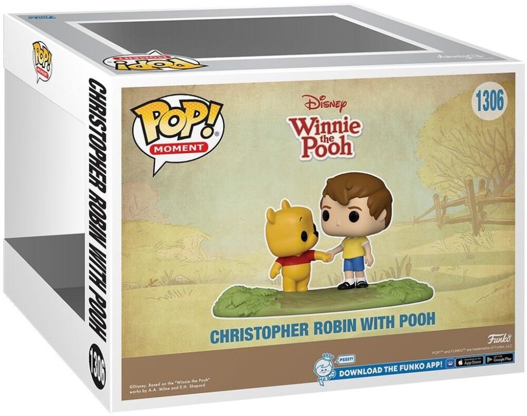 Pop! Moment Disney Winnie the Pooh. Deze set bevat de figuren Christopher Robin met Winnie the Pooh. De figuren zijn ongeveer 9 cm groot; het hele plateau is ongeveer 20 cm breed. Het is gemaakt door Funko. Nieuw in verpakking. Verzendmethode binnen Nederland is pakketpost.