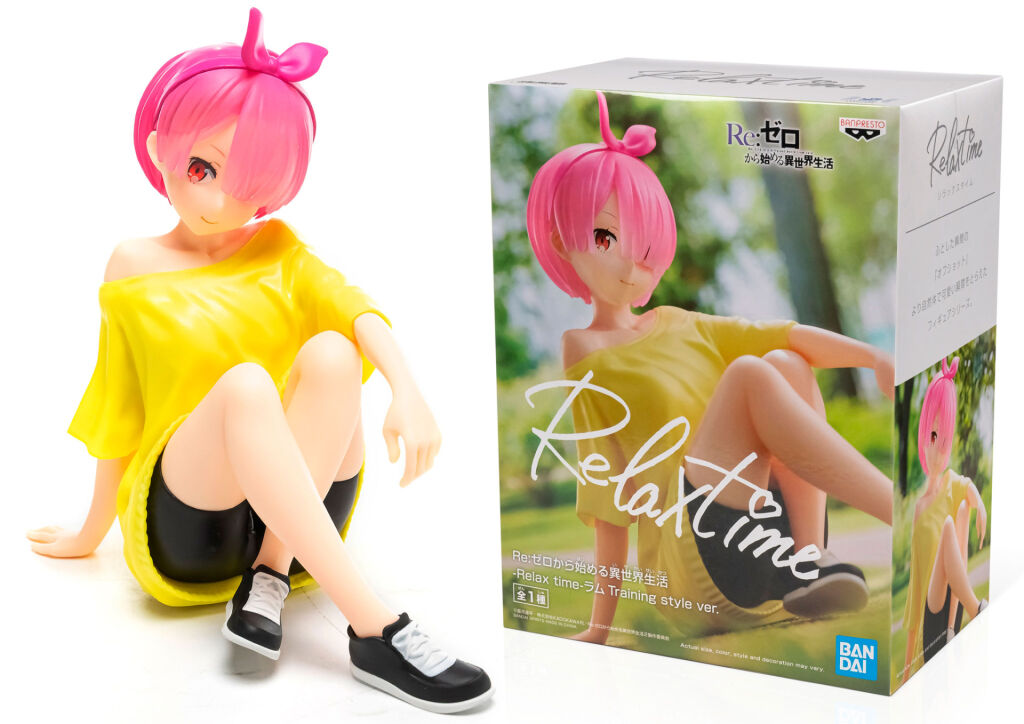 Re:Zero pvc figuur Relax Time Ram in training style is gemaakt door Banpresto. Dit pvc figure is ongeveer 14 cm. Nieuw in verpakking. Verzendmethode binnen Nederland is pakketpost.