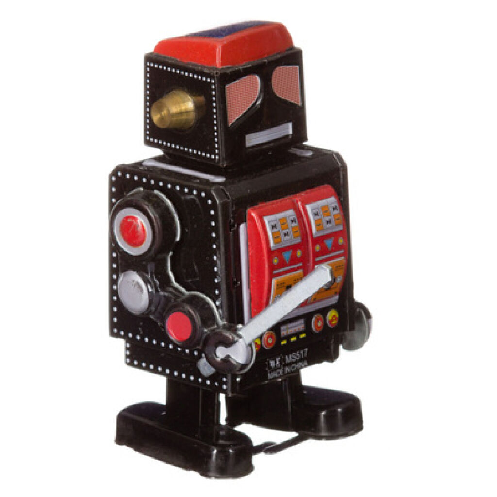 Robot MS518 met zwaard met wind-up functie. Gemaakt van blik en ongeveer 10 cm groot. Gemaakt in China. Nieuw in verpakking. Verzendmethode binnen Nederland is pakketpost.