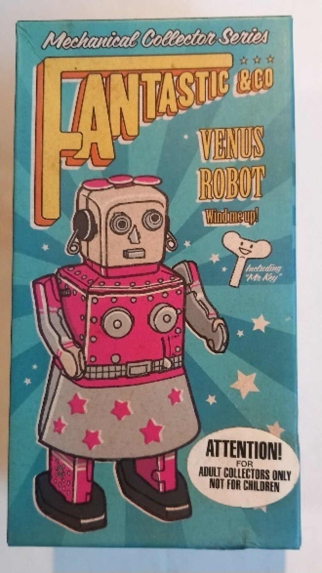 Robot Venus Robot met wind-up functie. Gemaakt van blik en ongeveer 14 cm groot. Nieuw in verpakking. Verzendmethode binnen Nederland is pakketpost.