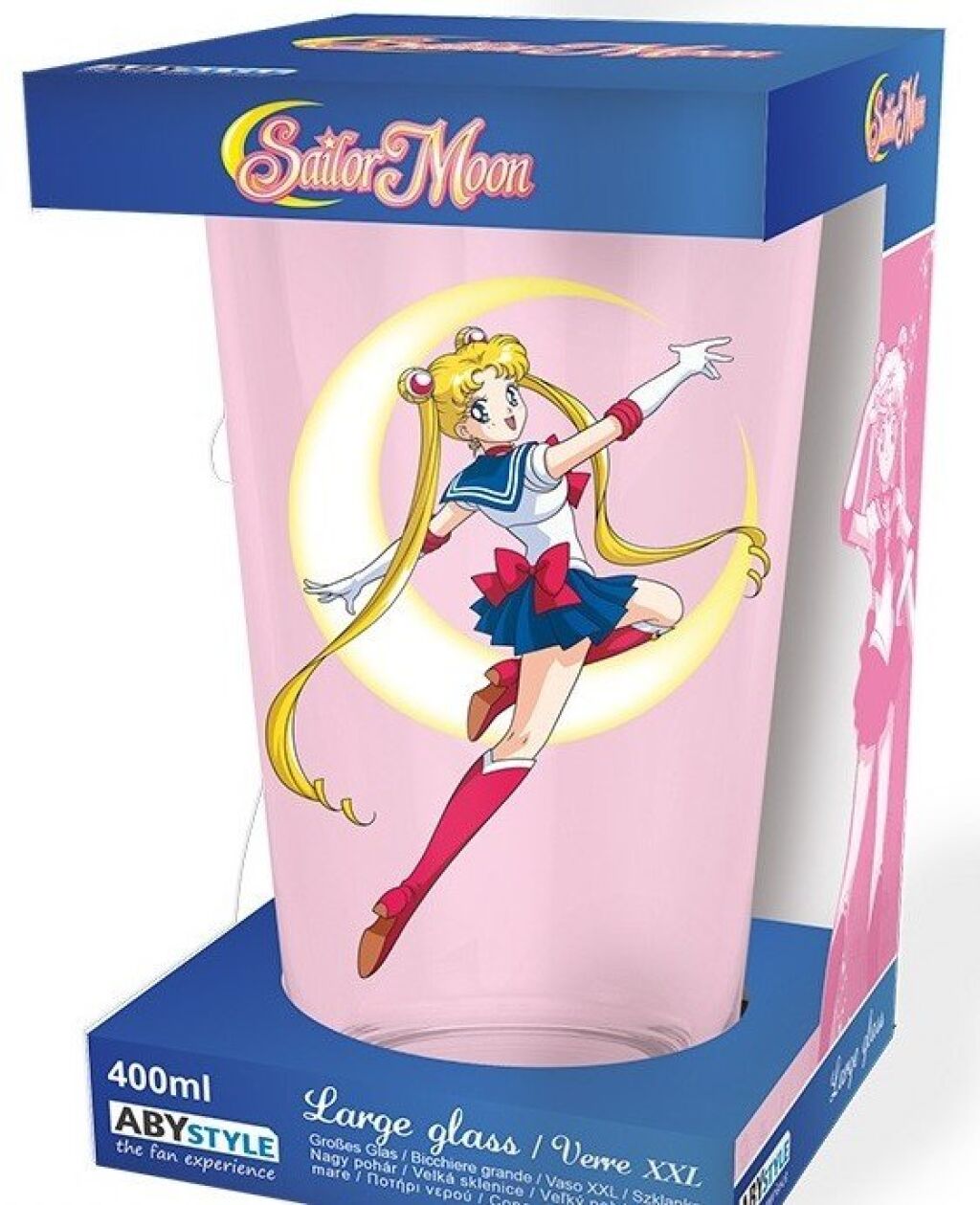 Sailor Moon groot drinkglas met een inhoud van 400 ml. Het glas heeft een print van Sailor Moon. Niet geschikt voor de vaatwasser of magnetron. Nieuw in verpakking. Gemaakt door Abystyle. Verzendmethode binnen Nederland is pakketpost.
