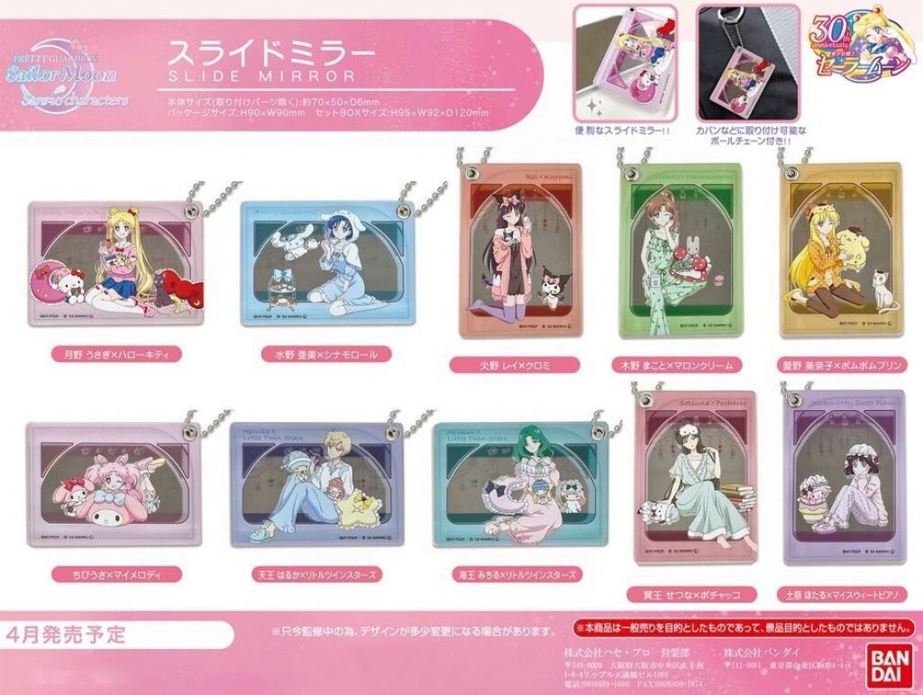 Sailor Moon x Sanrio characters sleutelhanger met spiegeltje. De sleutelhanger heeft een spiegeltje en daarvoor een acryl hanger met een afbeelding van Sailor Pluto en Pochacco. De hanger is 5 x 7 cm. Er zijn uit deze serie nog meerdere versies verkrijgbaar. Deze hangers hebben geen verpakking. Import uit Japan. Verzendmethode binnen Nederland is pakketpost.