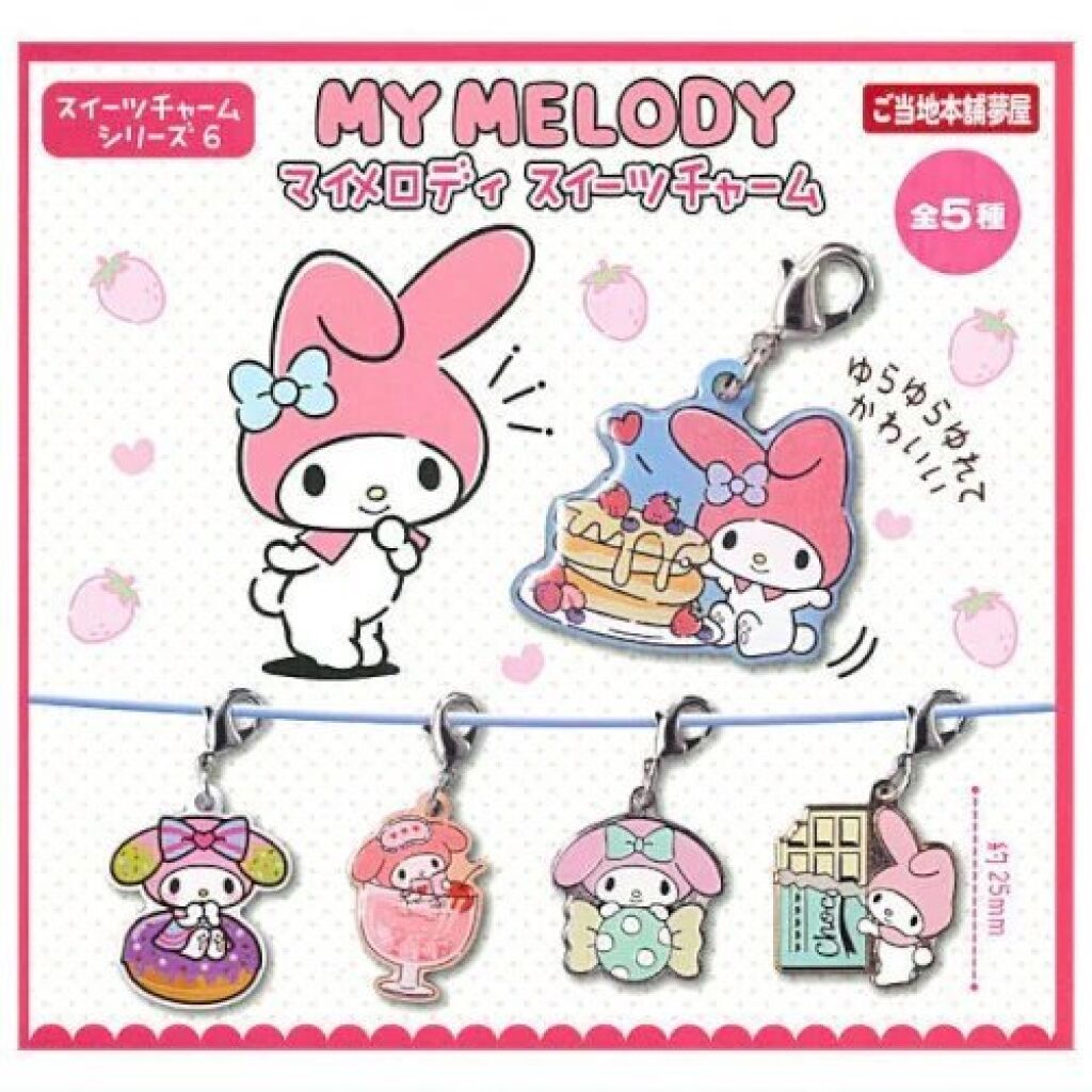 Sanrio My Melody Sweets charm collection. Deze My Melody hanger / kleine sleutelhanger is ongeveer 2,5 cm groot. Dit is My Melody met een chocoladereep. Er zijn er meerdere uitgebracht in deze gashapon serie. Gemaakt door Yumeya. Import uit Japan. Verzendmethode binnen Nederland is brievenbuspost.