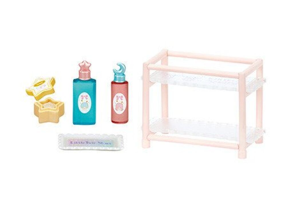 Sanrio Re-Ment serie Little Twin Stars Yumeiro Bathtime. Deze serie bestaat uit allerlei miniatuur onderdelen die met badkamer rituelen te maken hebben en met afbeeldingen of figuurtjes van Little Twin Stars. In dit doosje #4 zitten alle onderdelen om dit miniatuur setje te maken. Het wordt ongeveer 4 tot 6 cm groot. Er zijn van deze serie nog meerdere versies verkrijgbaar. Import uit Japan. Nieuw in verpakking; de verpakking is alleen geopend om te zien welke items er in het doosje zitten. Verzendmethode binnen Nederland is pakketpost.